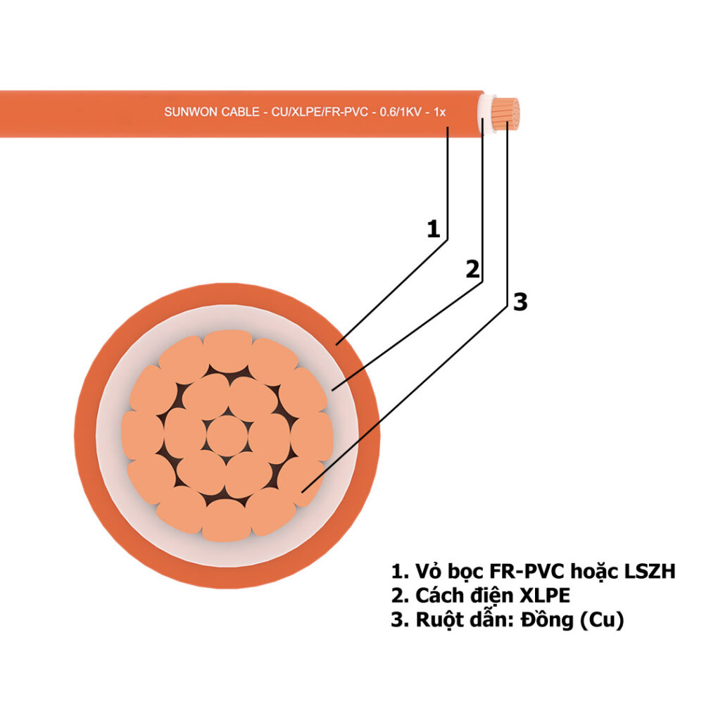 - Cách điện là PVC, XLPE, EPR hoặc HEPR;